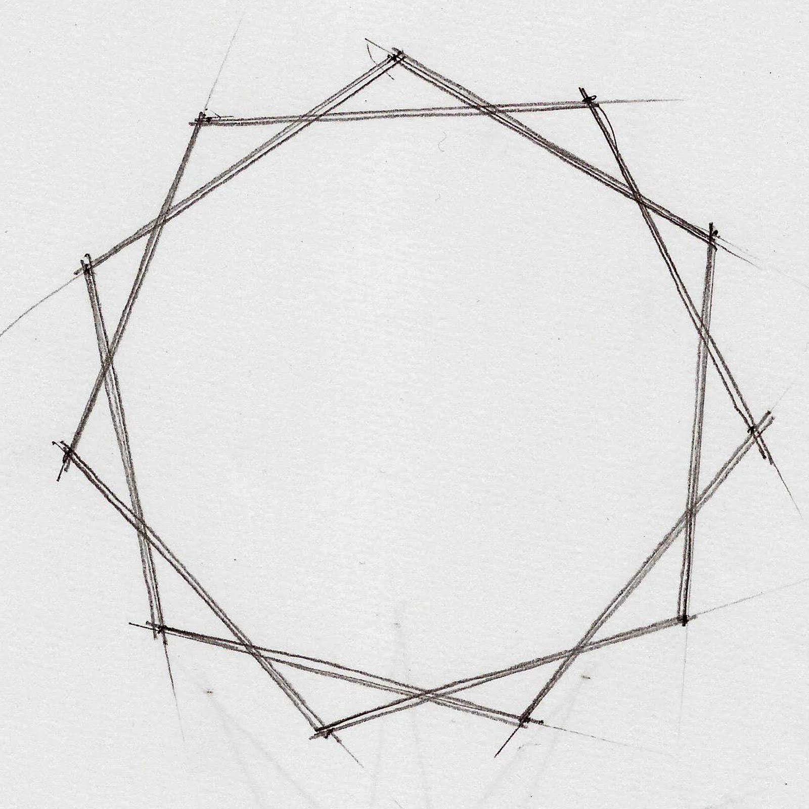 The eleven-sided polygon is rarely seen in nature. Its shape signifies an entrance or portal into what could been described as a mystical state of mind. Delusionary in content, eleven is also known to be the first number, i.e. the root, in a sequence of numbers, 22, 33, 44, etc. that exist in an ideal world beyond the constraints of form.
