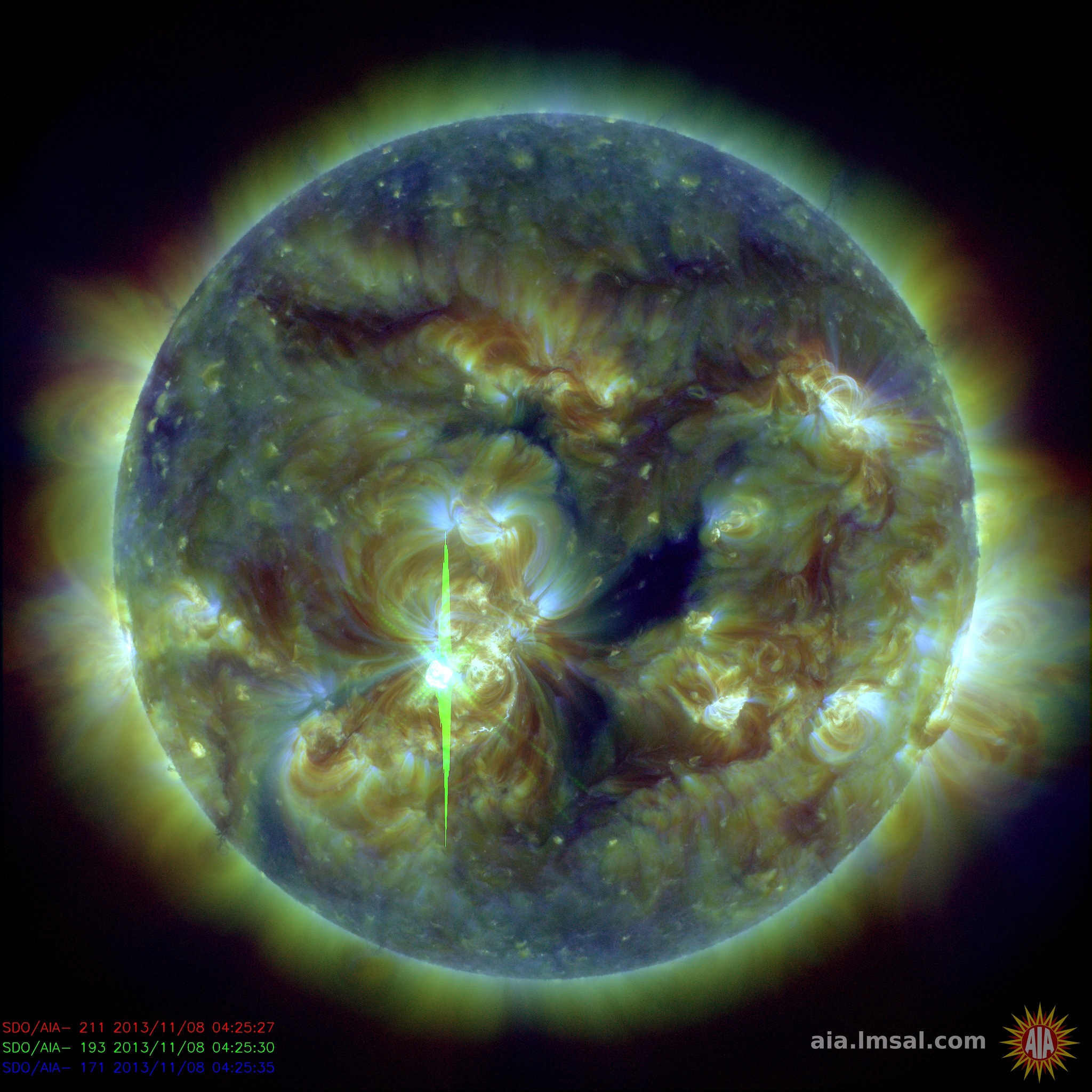 Secondly, yesterday November 8th, we had an X1 Solar Flare eruption whose effects will be hitting the planet on the 10th and 11th. Here is a picture of the Solar Flare taken by NASA.