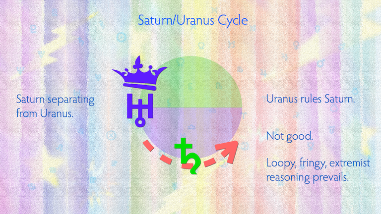 During planetary cycles, like the Saturn/Uranus cycle, when the faster planet, Saturn separates from the slower planet, Uranus, Uranus rules Saturn; Saturn is subordinated to Uranus.
